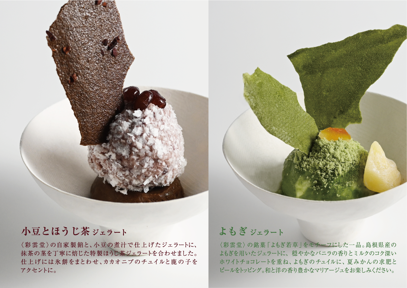 創業150年を迎えた松江の老舗和菓子店〈彩雲堂〉と、研究所型ジェラートブランド〈be GELATO〉が共同開発した、島根の素材を主役にしたコラボレーションジェラート2種を、日比谷しまね館にて期間限定で販売いたします。