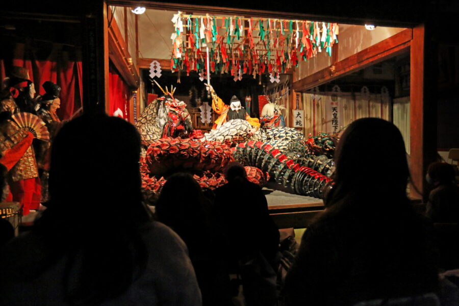 石見神楽を鑑賞しながら、ご当地グルメの夕食