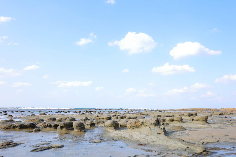 1600万年前の地層を見ながら石畳を散策