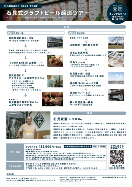 ※本旅行に関するお問い合わせは、石見麦酒様ではお受けしておりません。